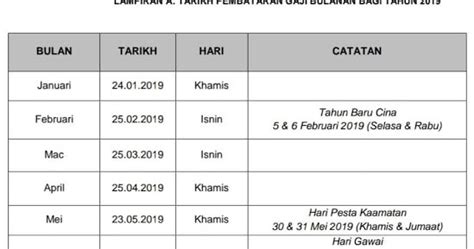 Dalam pekeliling juga disertakan bersama jadual pembayaran gaji 2019 iaitu di lampiran a.